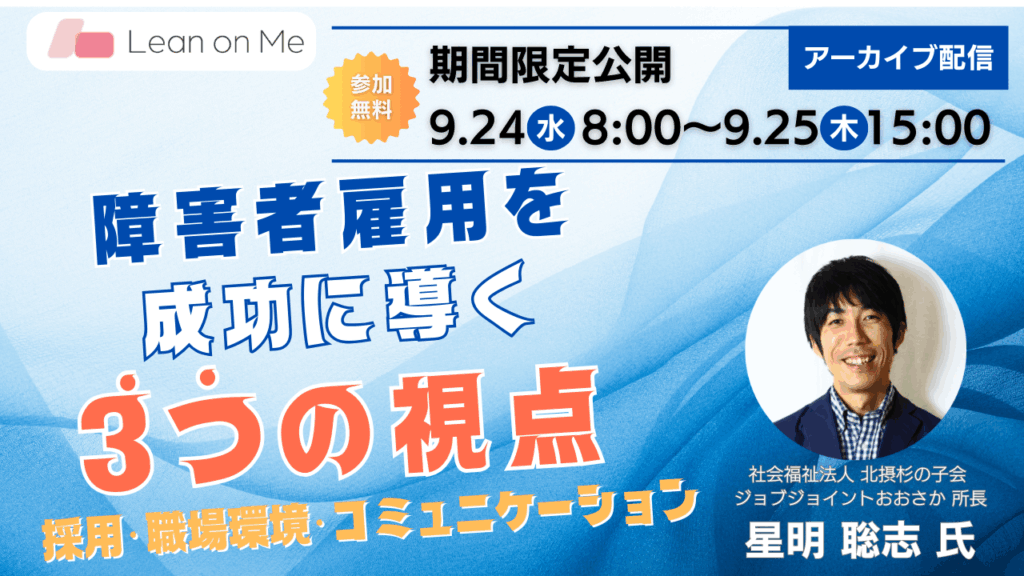 | タイトル | 障害者雇用を成功に導く3つの視点 ~採用・職場環境・コミュニケーション~ |