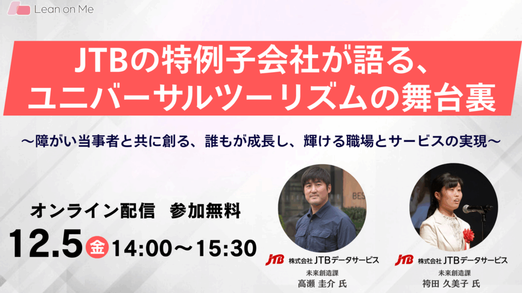 JTBの特例子会社が語る、ユニバーサルツーリズムの舞台裏~障がい当事者と共に創る、誰もが成長し、輝ける職場とサービスの実現~