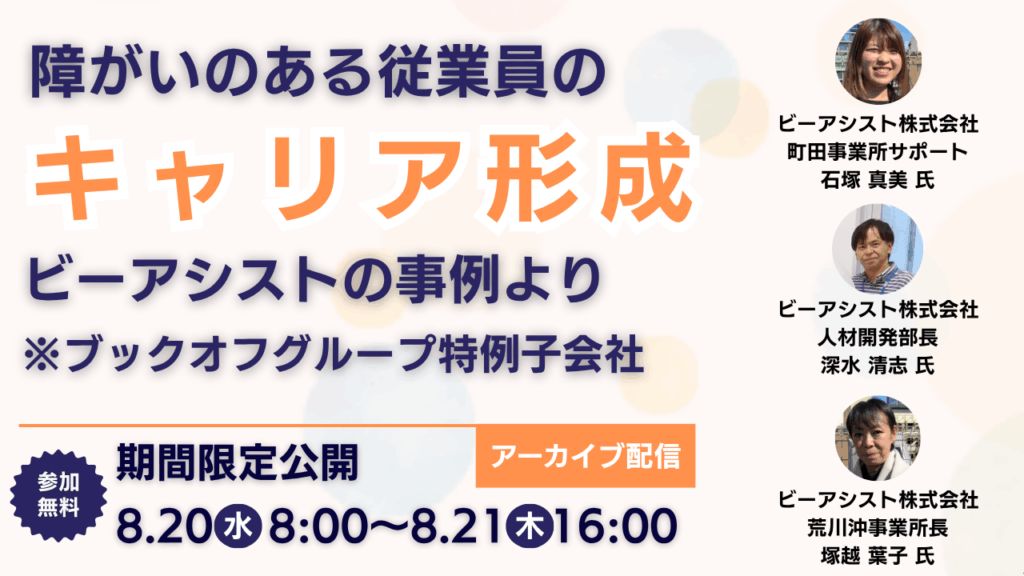 障がいのある従業員のキャリア形成〜ビーアシスト(ブックオフグループホールディングス特例子会社)の事例より